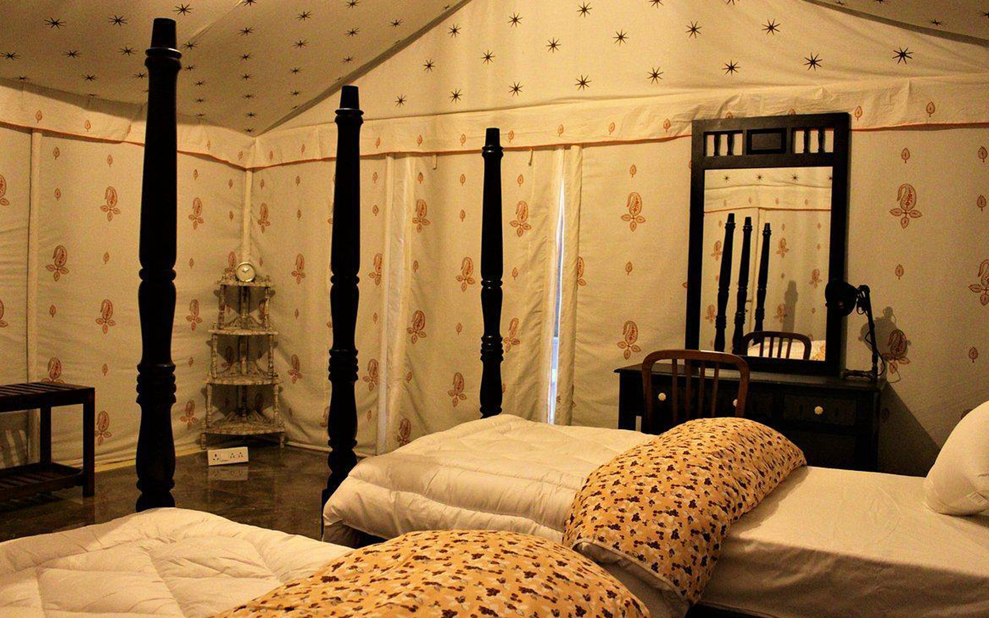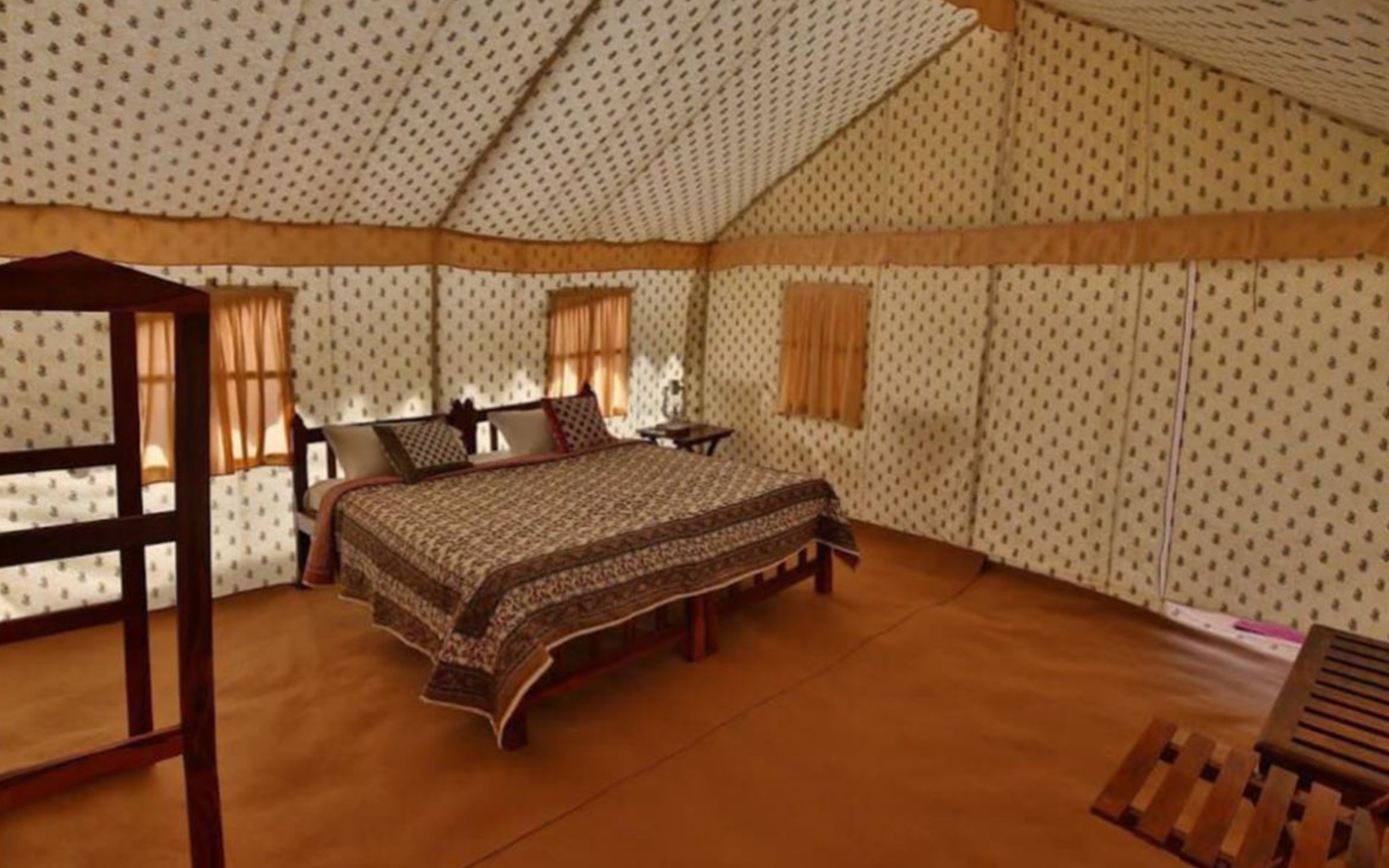 For those who seek a more indulgent retreat, our 100 Premium Swiss Cottage Tents offer a luxurious upgrade with all below mentioned amenities such as: